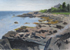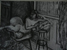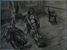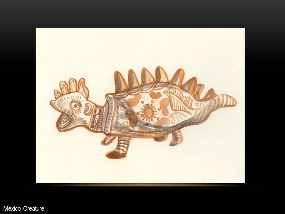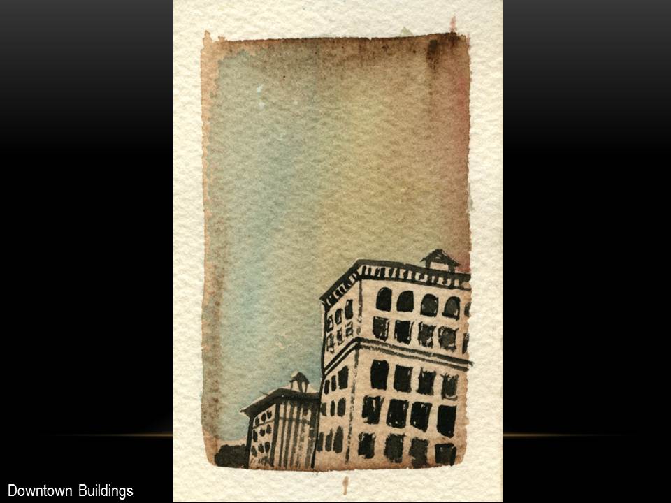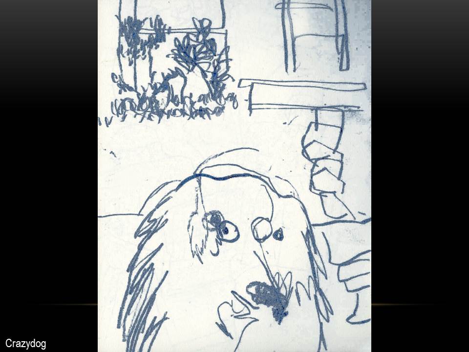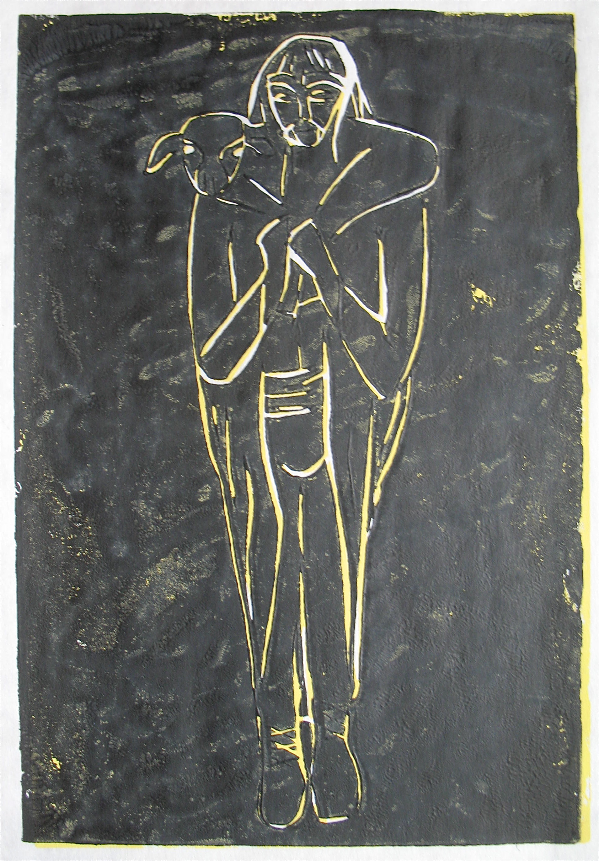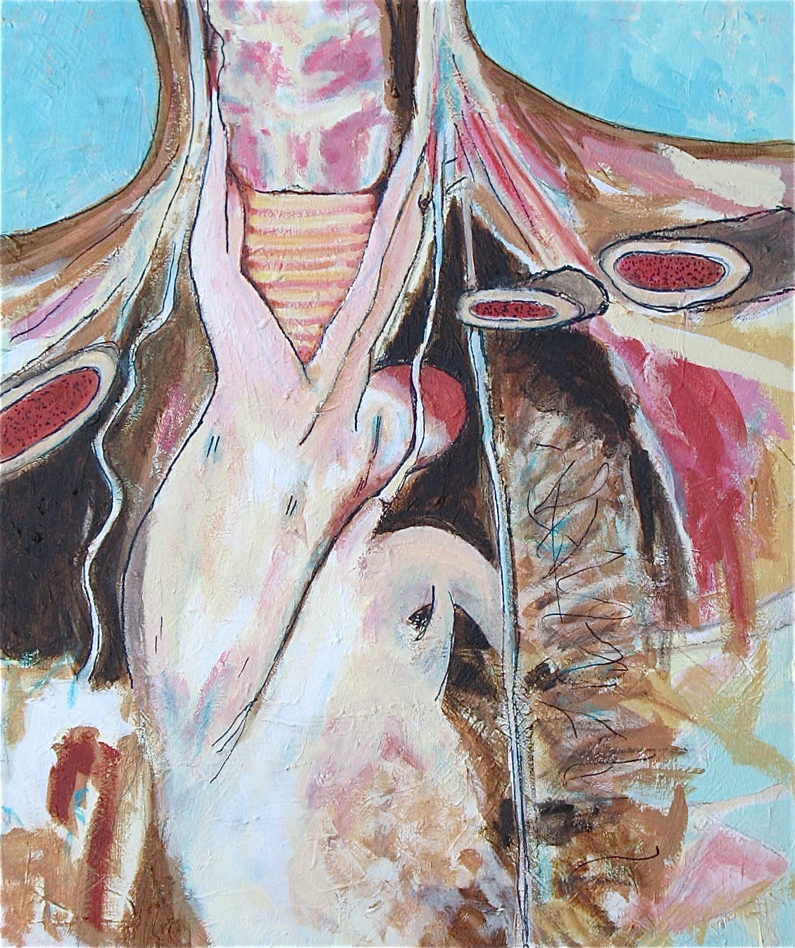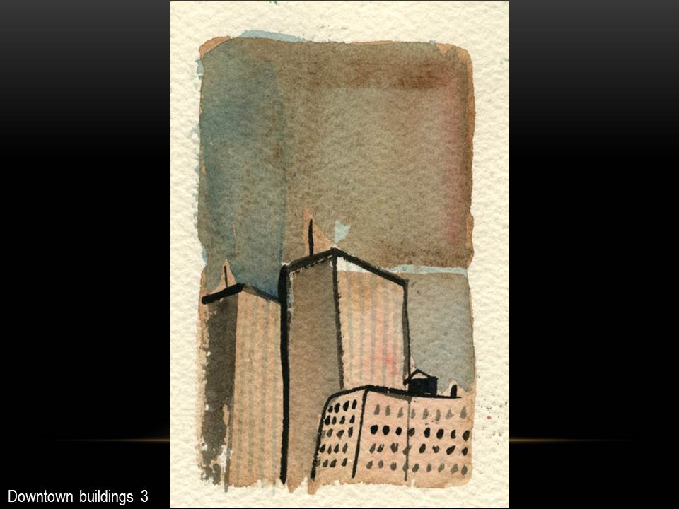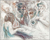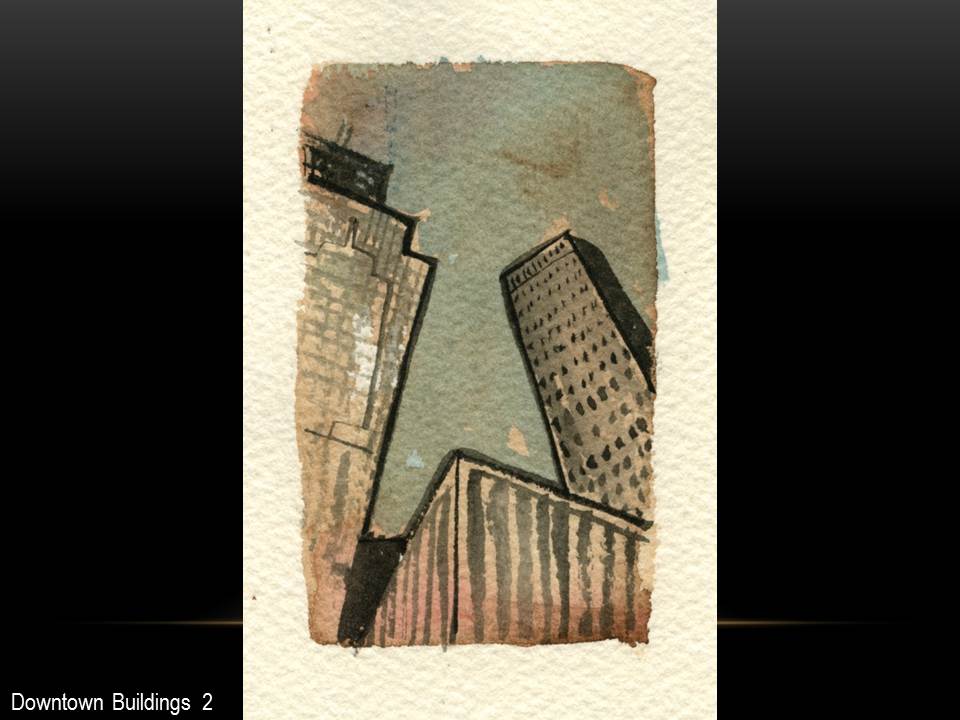 I often begin a piece by drawing “blind” with white crayon on white paper, then let the application of paint reveal content and guide me as I work up the rest of the picture.