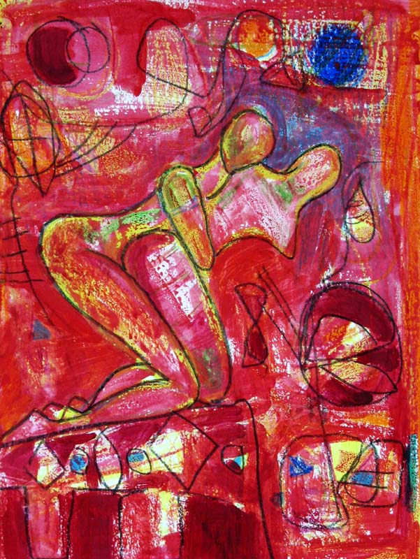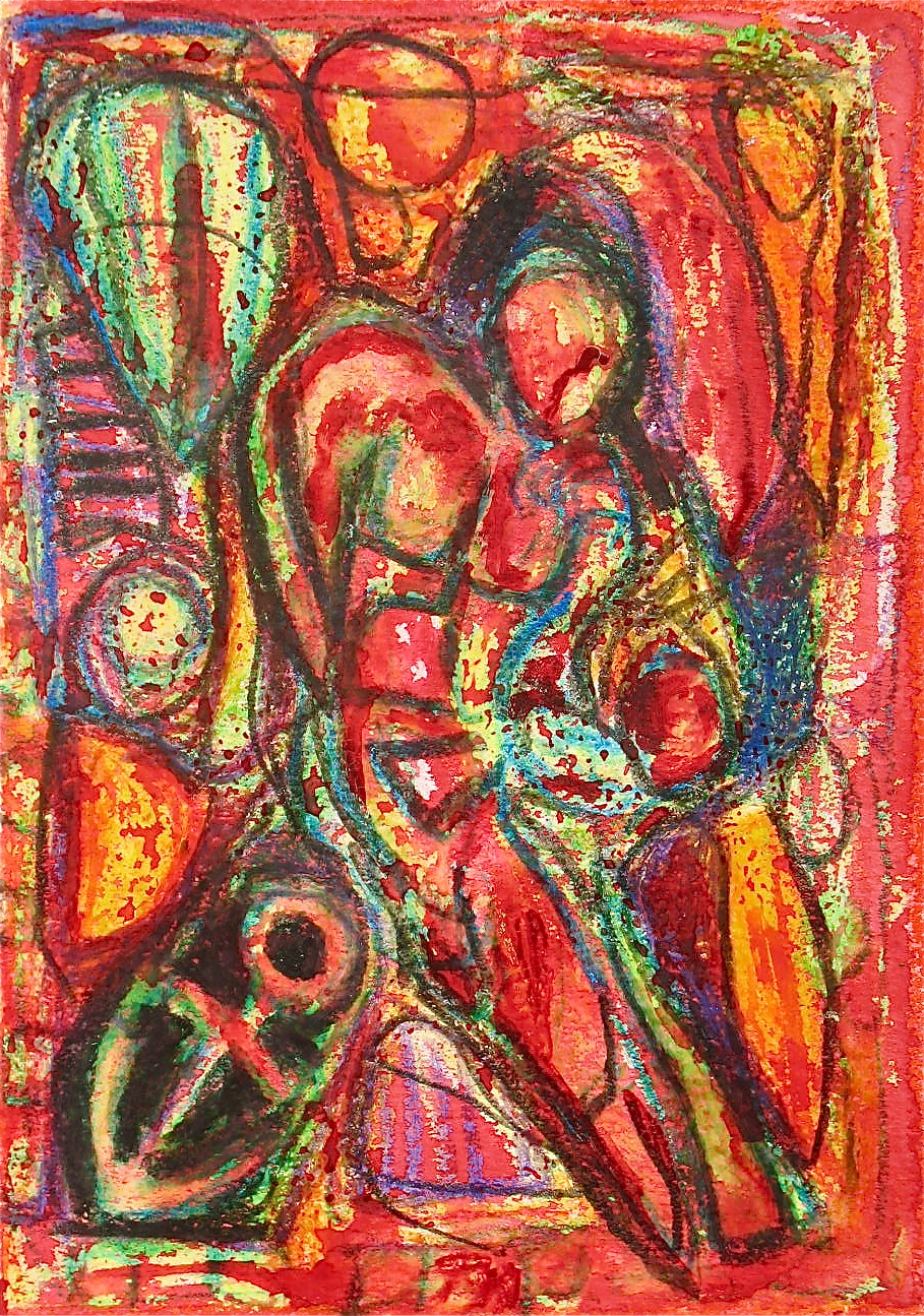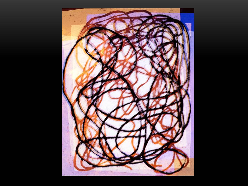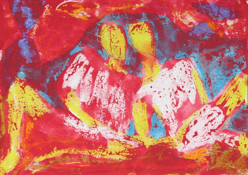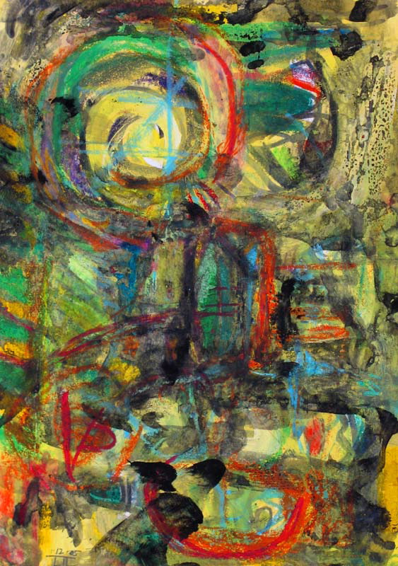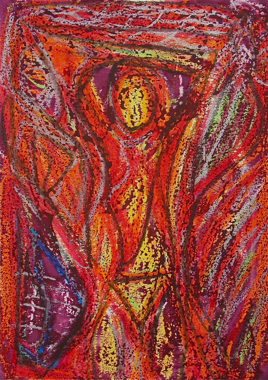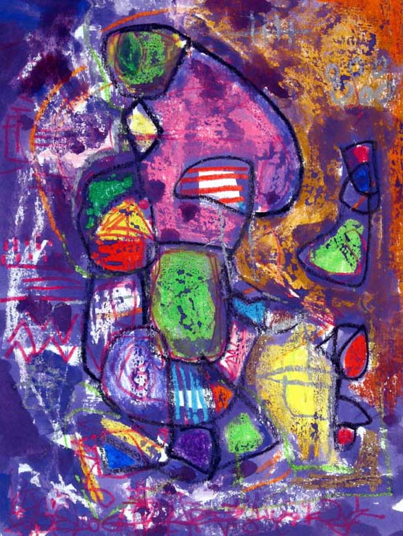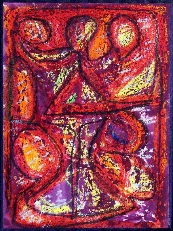 In much of my works on paper I use the resist technique between crayon and paint.