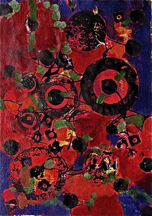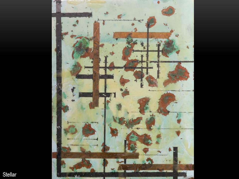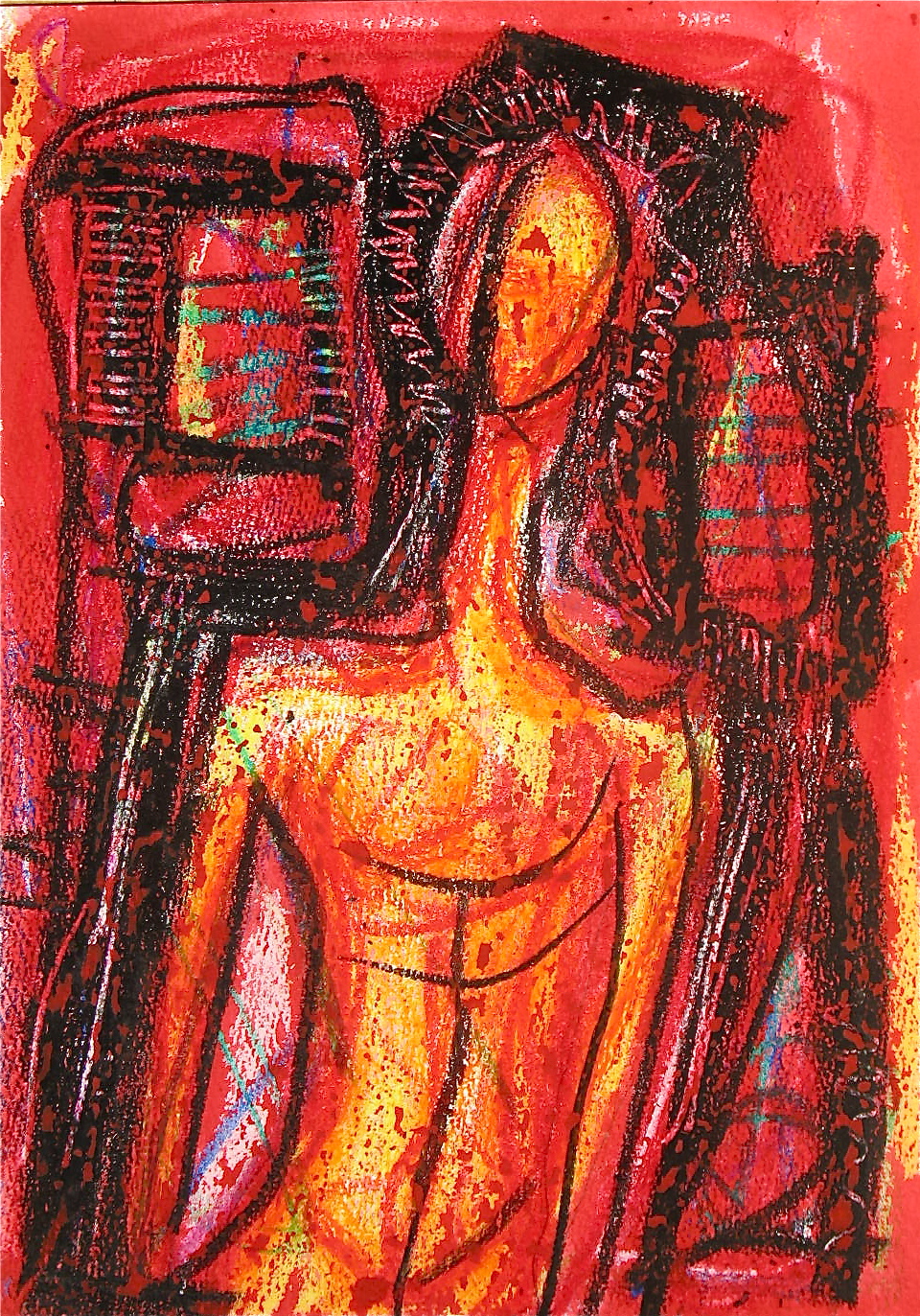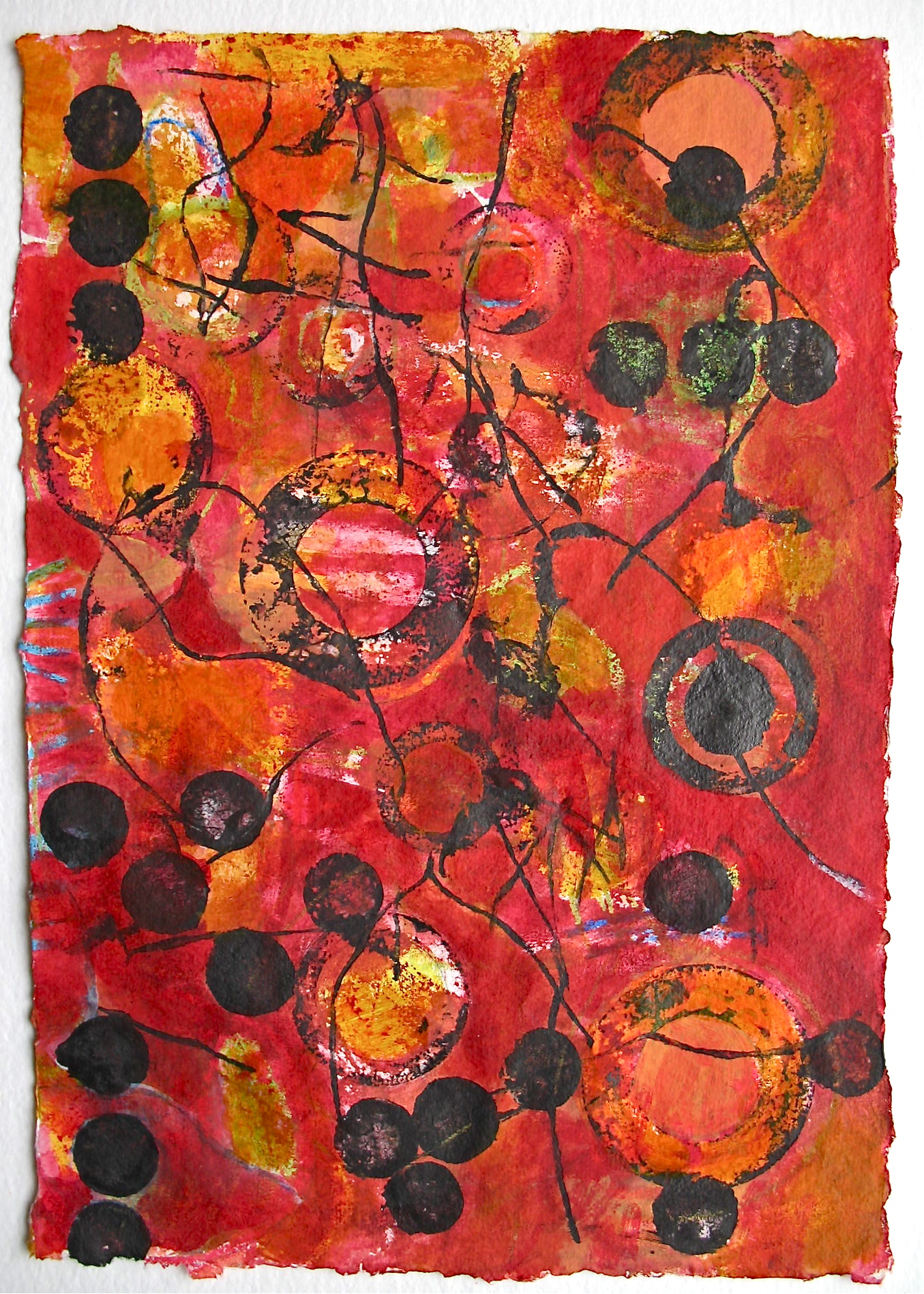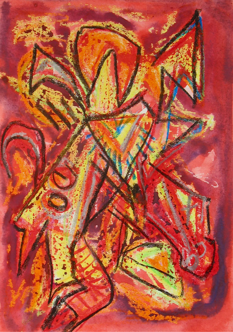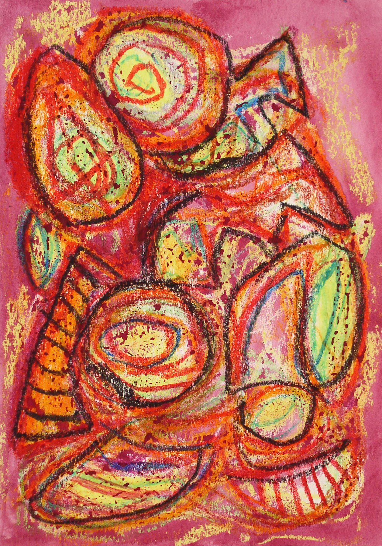 In much of my works on paper I use the resist technique between crayon and paint.