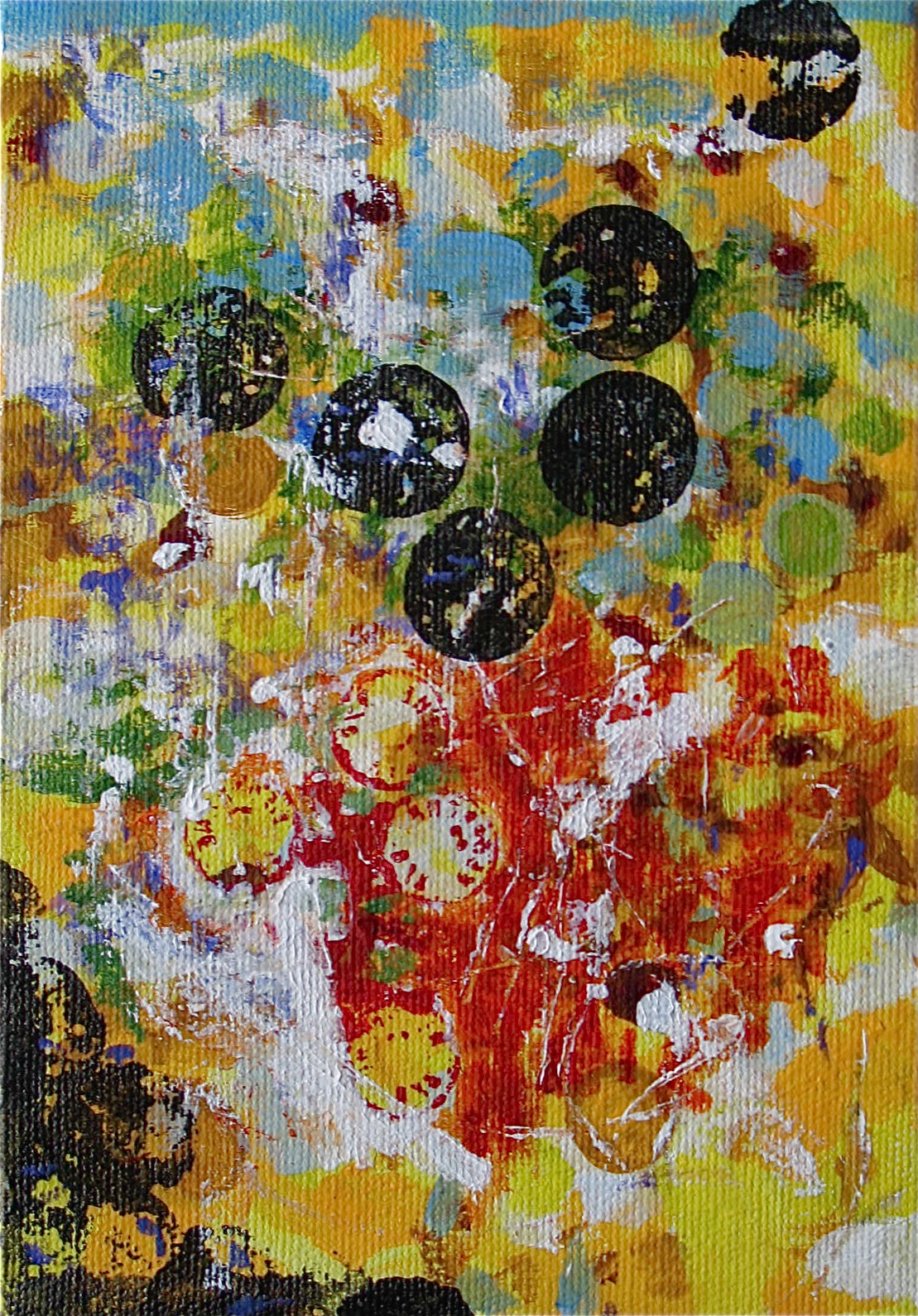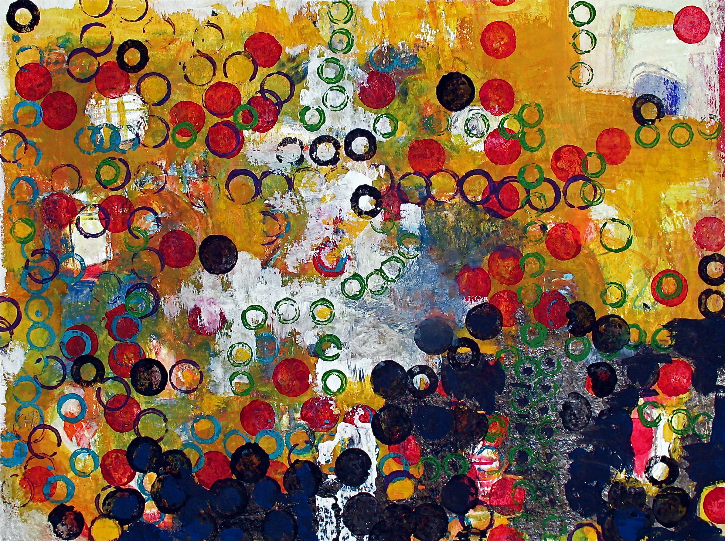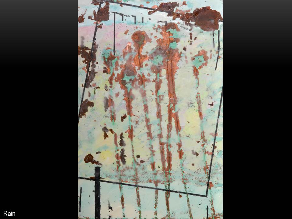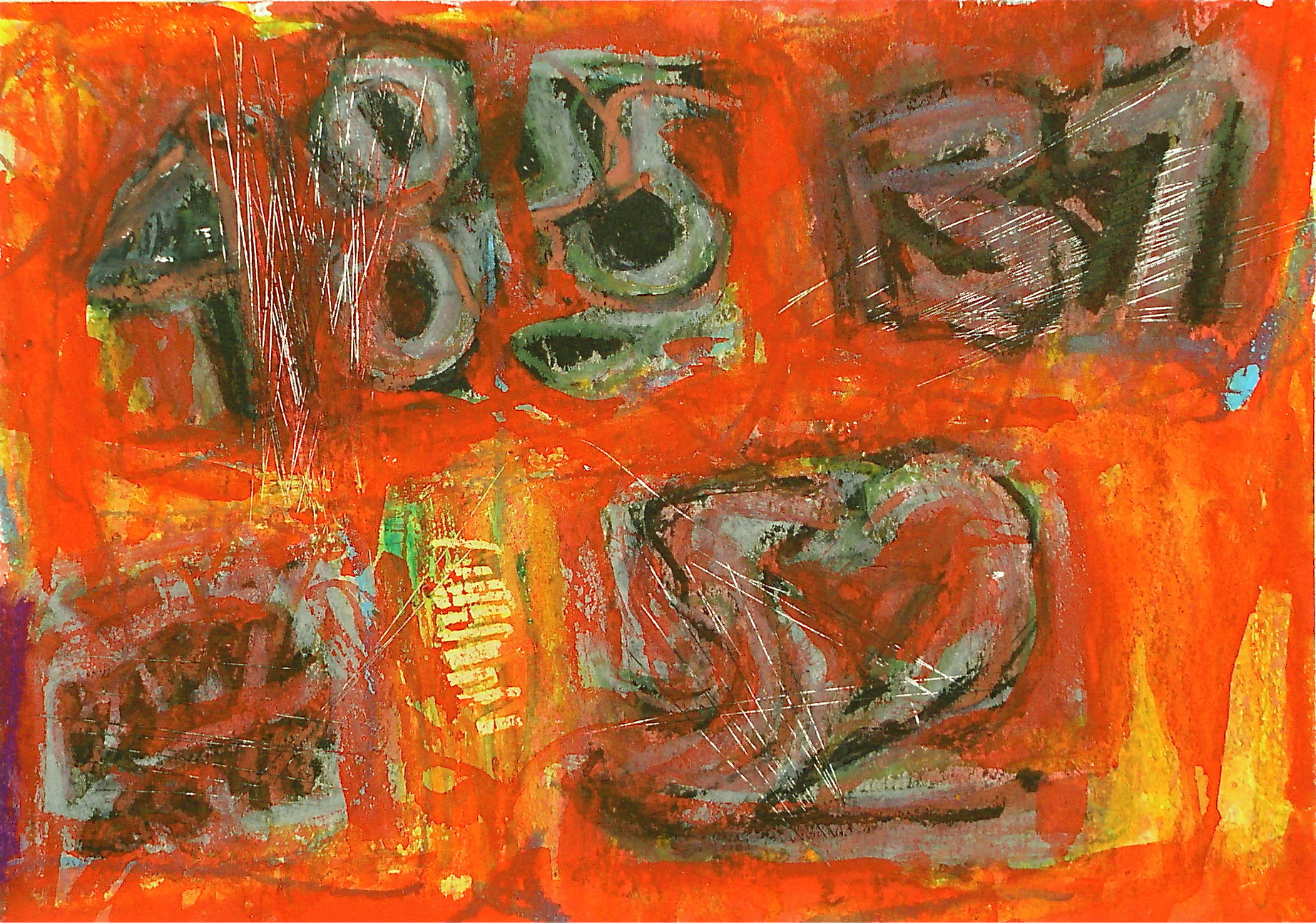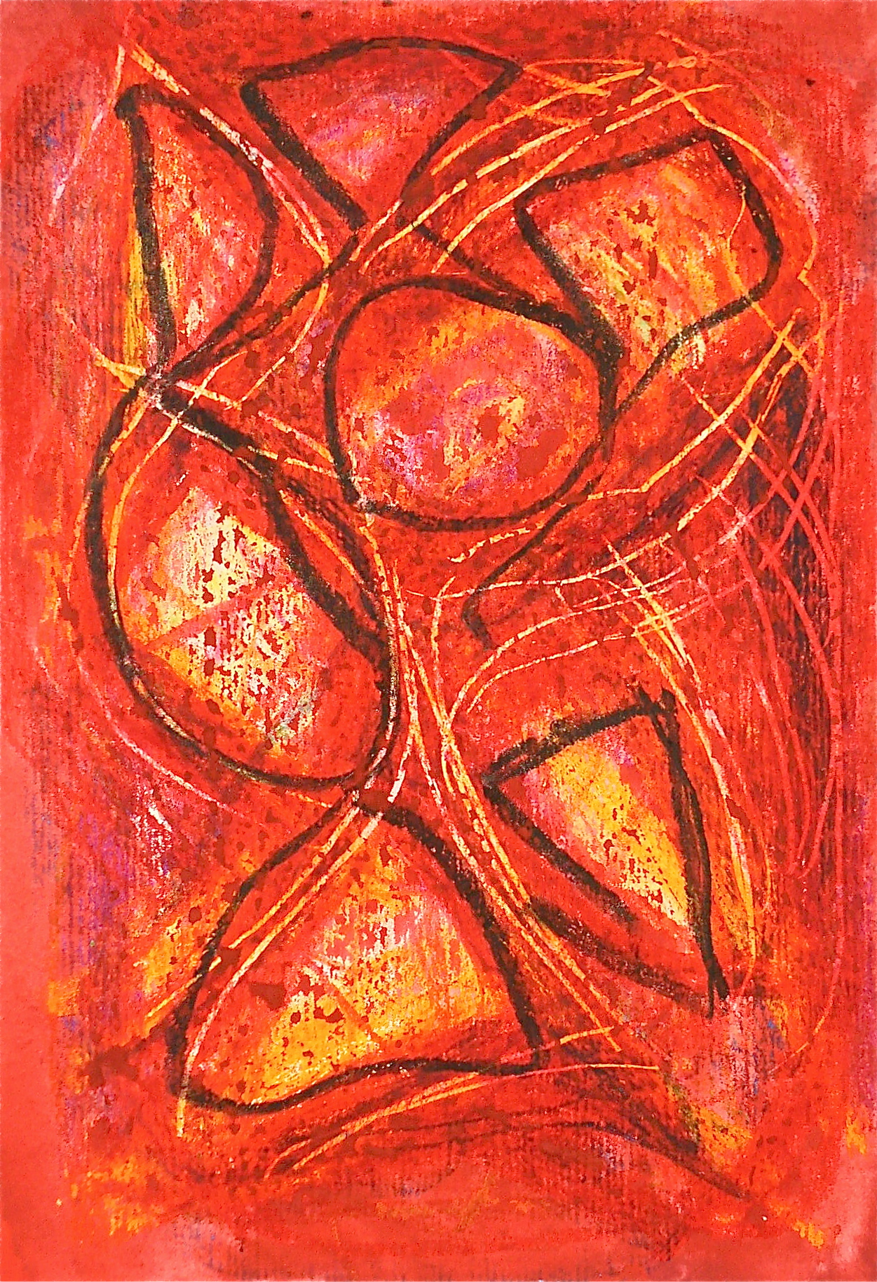In much of my works on paper I use the resist technique between crayon and paint.