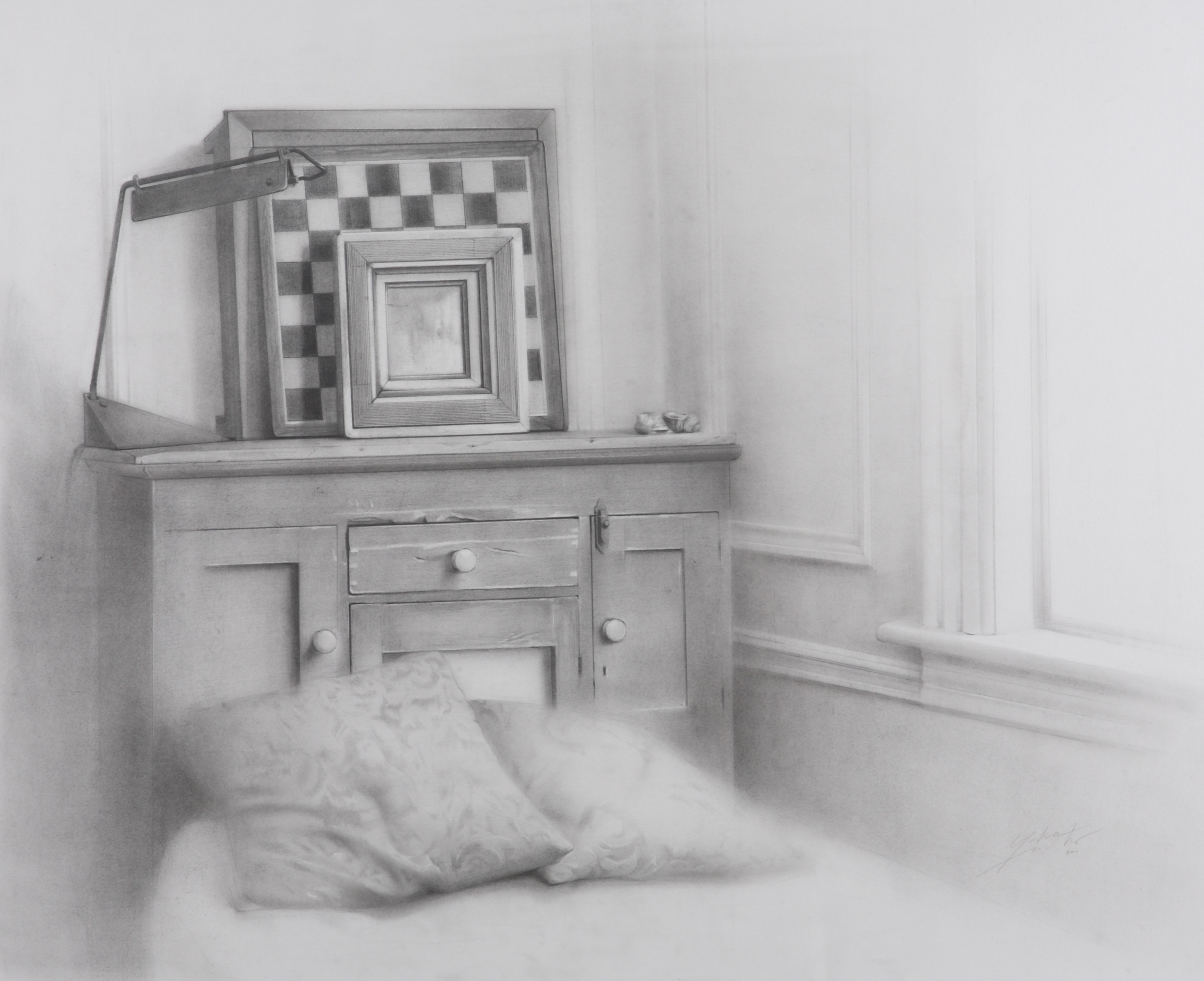 Evgenia Fisher: Evgenia Fisher born in Dushanbe, Tajikistan in 1974. Moved to the United States on March 1993 and began her studies at the Art Students League of New York 1997- 2008 with Instructor/Artsist George Cannata, Bruce Dorfman, Frederick Wong and others. Evgenia brings together a contrast of light and dark in her collection of paintings to show deep illusions. From near or afar, the black and white images create portals that draw in the observer. Evgenia has been a long time supporter of Moscow 57, lending her creative talents whenever possible. We are excited to have her as a part of our series for the summer.
